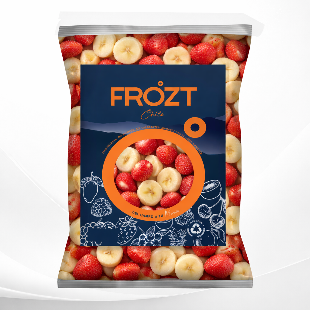 Una combinación deliciosa y práctica de banana en rodajas con frutillas enteras sin hoja, lista para disfrutar en cualquier momento. Nuestro mix congelado conserva el sabor, color y textura natural de la fruta, ideal para quienes buscan una opción rica, versátil y fácil de usar.